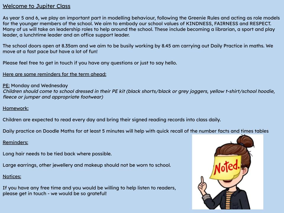 Welcome to Jupiter Class (Yr 5 & 6)
