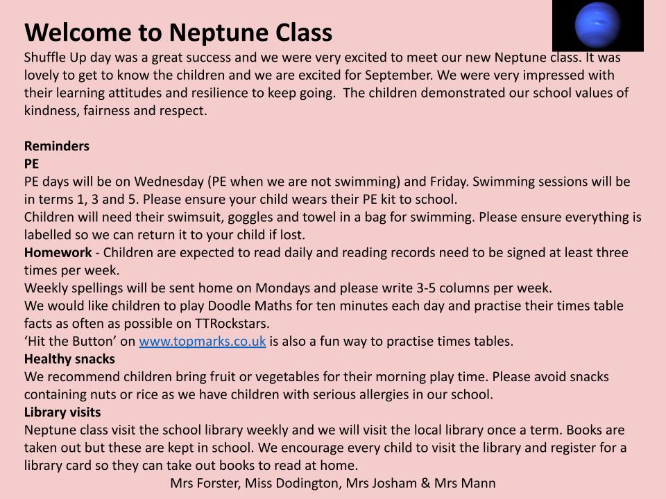 Welcome to Neptune Class (Yr 4)