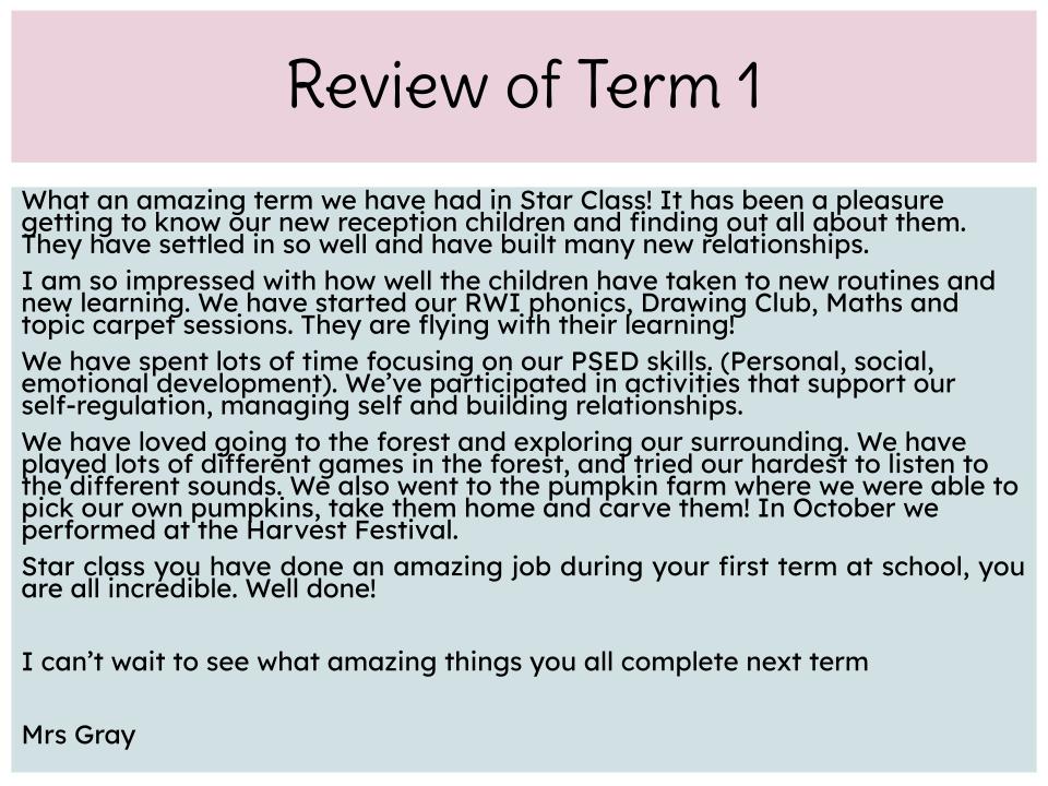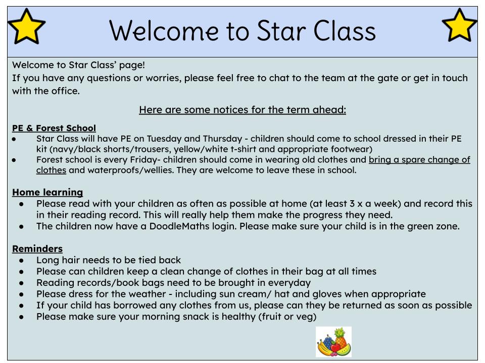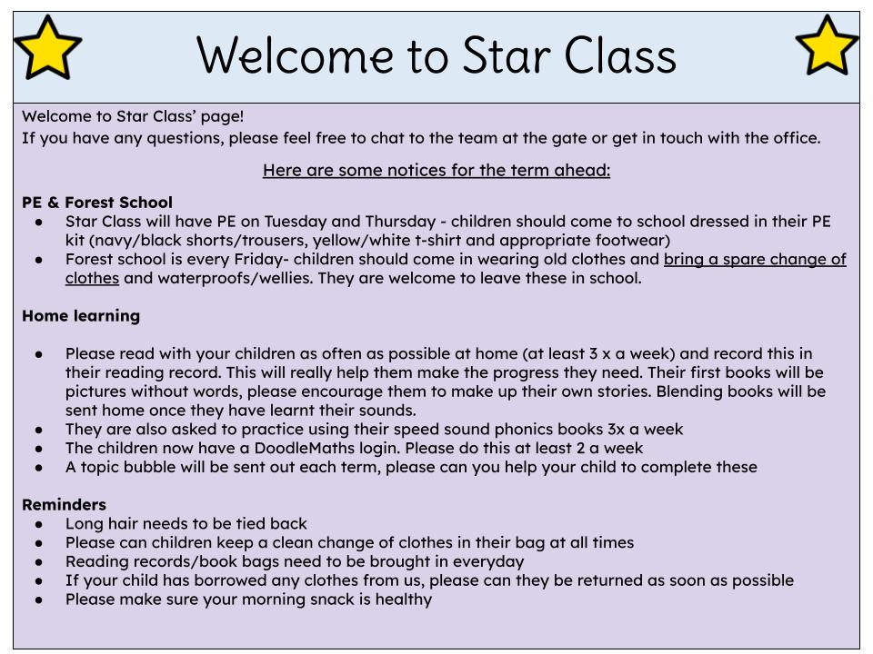 Welcome to Star Class (Reception)