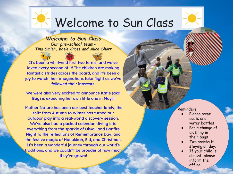 Welcome to Sun Class ( Pre-School 3 & 4 years old)